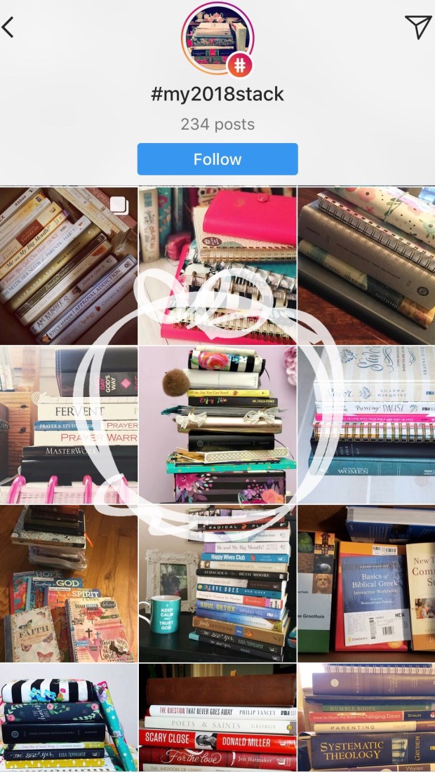 Women tagged each other to see their “stacks”, a set of books and/or planners that each participant planned to use for the year. Many shared in their captions that they wouldn’t have dared shared their private study habits or books publicly; others shared that they didn’t know about some of the books posted and were elated to learn of them. I was tagged by my dear friend, Monika (@mon_creates) and shared my own 10 book stack of creative and literary delight!